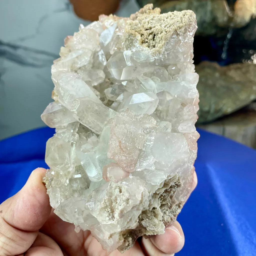 Cada drusa é uma criação singular, com um toque sutil de avermelhado que realça a pureza e a luminosidade do quartzo transparente. Esta combinação única não apenas encanta os olhos, mas também emana uma poderosa energia de cura e equilíbrio. O Cristal de Quartzo Transparente é reconhecido por sua capacidade de amplificar a energia, purificar o ambiente e promover clareza mental.
