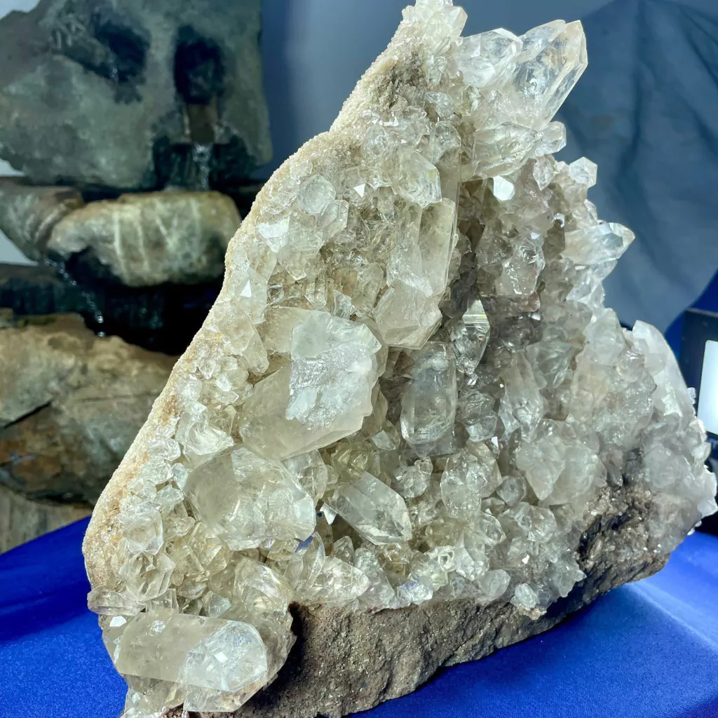 Cada faceta desta drusa bruta de quartzo transparente é uma testemunha silenciosa do poder e da beleza da natureza, esculpida ao longo de eras. Ao trazer esta peça para sua vida, você está convidando uma fonte constante de equilíbrio, clareza e harmonia.