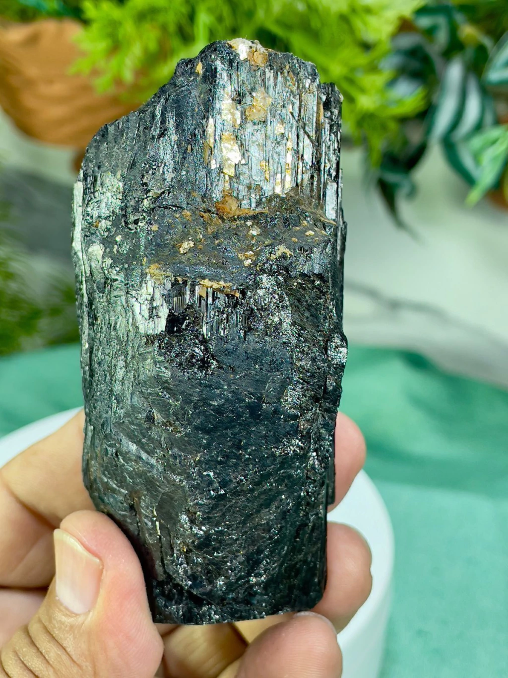 Como peça decorativa, Turmalina Negra não é apenas bela — é imponente. Sua presença transmite força, proteção e autoridade energética. No ambiente, funciona como um “vigia energético”, mantendo o espaço limpo, seguro e vibrando em equilíbrio.